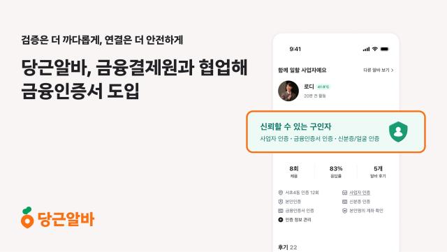 당근알바, 금융결제원 금융인증서 도입…"이용자 신뢰 강화"