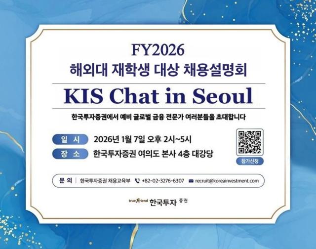 한국투자증권은 2015년부터 매년 해외대 전형을 통해 글로벌 인재를 선발하고 있다. 올해 역시 2월부터 전형 절차를 진행할 예정이다. 또 해외 거주로 참석이 어려운 지원자들을 위해 별도 비대면 설명회를 진행하고 있다.